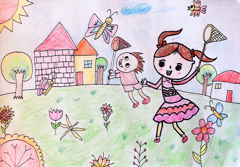 作品说明:我用画笔描绘了和小伙伴们一起享受文明和谐的小康生活、健康成长的美好画面。珍惜当下、感恩先辈,也期待着快快长大,学习好manbetx安卓手机 知识,将来建设好我们的国家,实现中国梦。