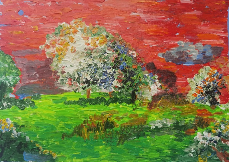 作品说明:2019年的学校春游,是到植物园种树。前一天,还是淅淅沥沥的春雨,今天就春光明媚、万里无云。春雨,把泥土浇得湿漉漉的。太阳暖暖地照着,热气从土里冒出来,大地仿佛开始了呼吸。同学们自组分队,有的挖树坑,有的抬树苗,有的填树坑,大家都忙得不亦乐乎。铁锹的挖土声,水桶的磕碰声,同学们的欢笑声,仿佛不同的音符,谱写着劳动的乐章。春游结束后的很长一段时间里,我一直记挂着这些亲手种下的小树。他们是我们的劳动成果,带着我们的欢乐,更有着我们对美好未来的期盼!而我们这些初中生,正如这些树苗一样,在祖国大地上茁壮成长,幸福学习和生活,一天比一天长高和长大!
