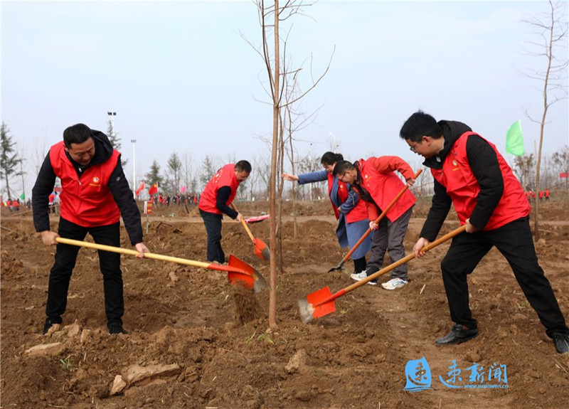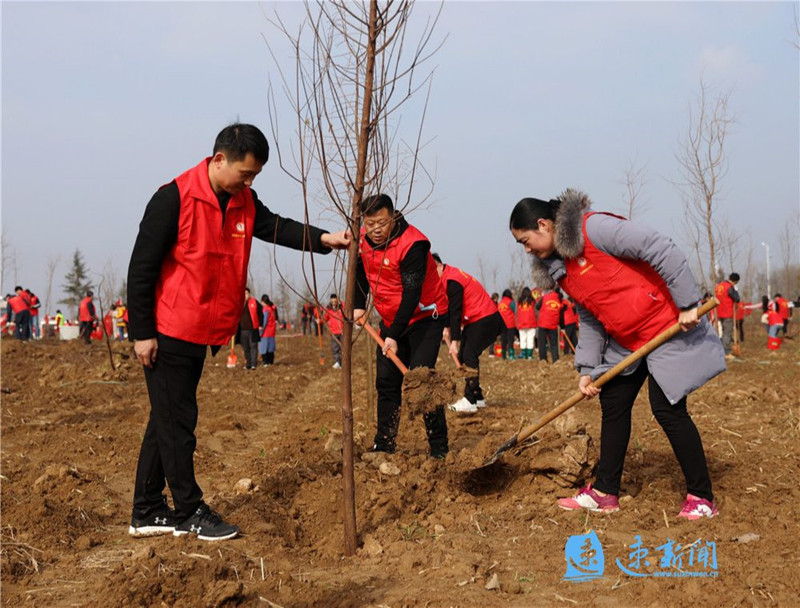 3月12日,宿迁市沭阳县300多名县级机关单位党员干部志愿者,在柴米河南侧义务植树,纪念全民义务植树活动开展40周年。当前,沭阳县以创建国家森林城市和省园林城市为契机,发动全县机关党员干部带动群众,掀起绿化造林新高潮。(丁华明 摄)