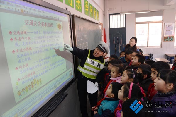 2013年1月28日,镇江京口交巡警大队交巡警来到镇江市实验小学,为即将过寒假的学生讲解交通安全知识,让他们过个平安快乐的寒假。
