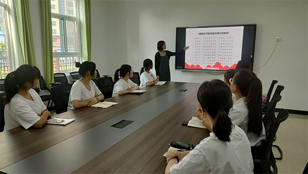 接下来,保教处李臻主任带领大家一起学习《新时代济源市民文明行为规范》、《新时代济源市民文明公约》和《天坛路幼儿园教职工文明行为规范》,进一步明确幼儿教师文明礼仪规范。
