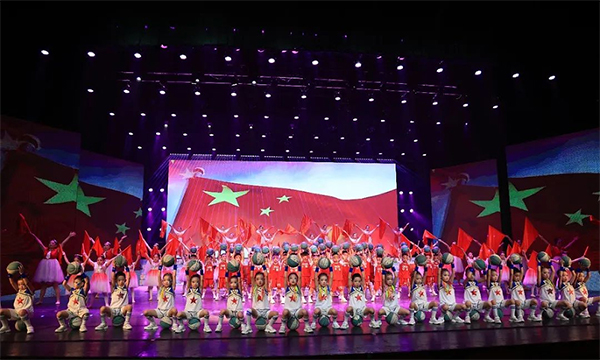 慰问结束后,庄建球一行来到了manbetx安卓手机 城愚公剧场和孩子们一起观看了“童心向党 传承家风”少儿优秀节目展演,少先队员为他们佩戴上红领巾,在一片歌声中,进入演出现场。