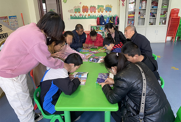 活动现场,残疾儿童们在老师和家长的陪伴下,一起阅读《狼和小羊》、《老鼠看海》、《小猫钓鱼》等故事,现场洋溢着浓浓的亲情,满满的幸福。小叶今年4岁了,患有听力残疾,在妈妈的帮助下,指认着绘本图画,兴趣很浓,看完一本,还嚷嚷着要继续看。