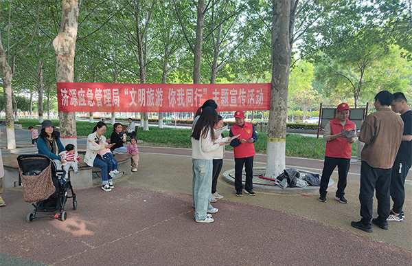 “文明每一步,精彩每一景。”在五一小长假来临之际,不少游客趁着天气晴好,走进公园、景区游玩赏景拍照。为营造文明旅游新风尚,提高群众文明出游及安全防范意识,近日,济源应急管理局组织志愿者走进世纪广场,开展以“文明旅游 你我同行”为主题的宣传活动。