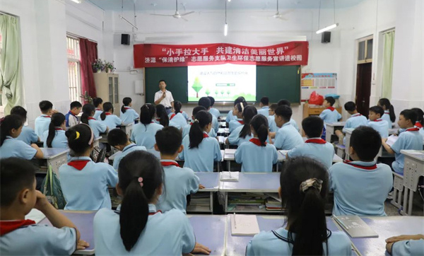 5月27日,济源生态环境局“保清护绿”志愿服务支队走进东园学校,以“小手拉大手 共建清洁美丽世界”为主题,开展卫生环保志愿服务宣讲活动。