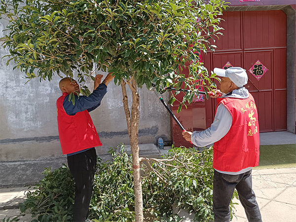 现场查看情况后,技术人员针对树龄偏长、树形杂乱、品种不一且比较名贵的树木,提出具体修剪方案。一是根据苗木生长现状、位置;二是考虑到实用性、是否遮挡过往视线等因素;三是减少病虫危害。方案确定后,大家利用手上的修剪工具,分工协作,对树木过密、病死枝、枯枝进行修剪,共修剪树木200余棵,并将修剪下来的树枝进行集中清理。经过修剪后的树木不仅消除了安全隐患,也显得格外精神整齐,增加了通风、透光作用,同时,也有效地改善了乡村环境。