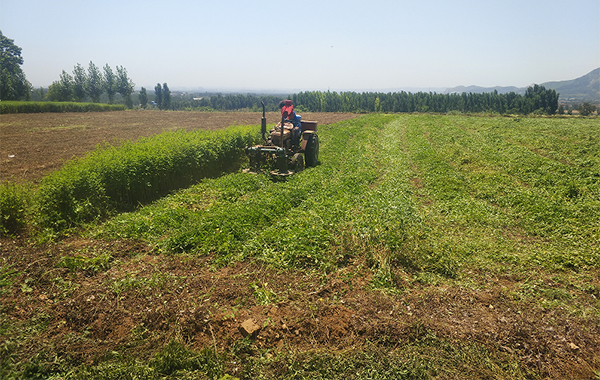 三夏时节,头茬冬凌草开始收割,获得丰收,林下套种模式发展势头喜人。近日,在克井镇枣庙村,随着专业收割机轰鸣作响,一片片冬凌草被整齐割下。