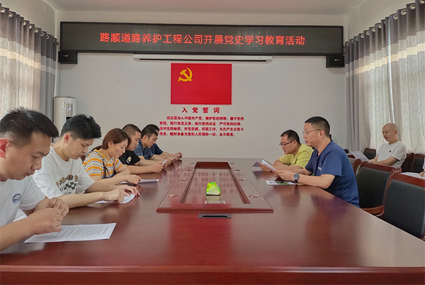 为深入学习贯彻党的二十大精神,推动党史学习教育常态化长效化,引导党员干部职工深刻领悟学习党史的重要意义,切实把思想和行动统一到党中央决策部署上来。7月21日,路顺道路养护工程公司组织开展党史学习教育活动。