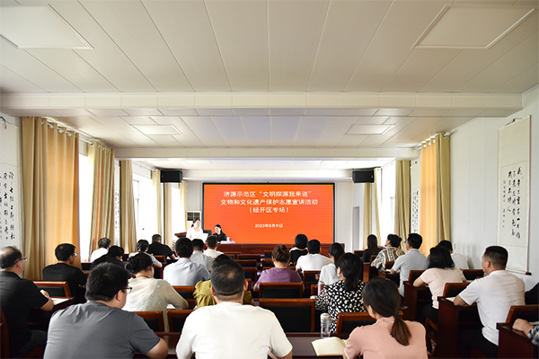 为深入学习贯彻党的二十大精神,大力传承弘扬中华优秀传统manbetx安卓手机 ,8月11日,济源经开区举行“文明探源我来说”文物和manbetx安卓手机 遗产保护志愿服务宣讲活动,邀请济源市博物馆党支部书记胡成芳讲授《济水与济渎庙》。宣讲会上,胡成芳书记用通俗生动的语言、丰富翔实的史料、立体多元的视角,围绕习近平总书记在manbetx安卓手机 传承发展座谈会上重要讲话精神以及关于文物和manbetx安卓手机 遗产保护方面重要指示精神,从济水的形成变迁、流域概况、济水地位、济水manbetx安卓手机 等方面深刻阐释了中华优秀传统manbetx安卓手机 的内涵,作了一场有理论深度、学识广度、情感热度的宣讲。通过宣讲教育大家增强历史自觉、坚定manbetx安卓手机 自信,坚持用中华优秀传统manbetx安卓手机 修身立德,让中华优秀传统manbetx安卓手机 在新时代焕发出新生机。