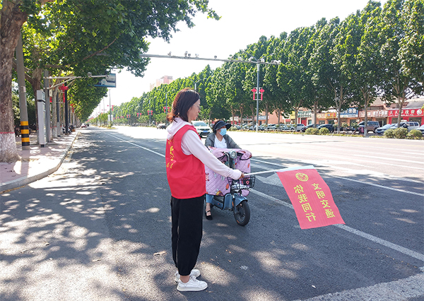 活动中,志愿者们来到车流量较为集中的十字路口,现场向群众发放宣传资料,详细讲解相关政策要求,提醒行人按交通信号灯过马路,劝阻横穿道路等不文明行为,对电动车驾乘人员不佩戴安全头盔、行驶中随意接打电话、逆向行驶,以及非机动车乱停放等不文明交通行为耐心劝导。
