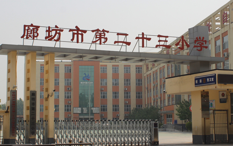 廊坊市第二十三小学是市、区两级政府实施的城区学校建设重点工程。学校西临许青路、东临环城水系,北临市调料厂,南临金星道。学校自2012年9月开工建设,2013年9月2日开学投入使用。现有教师154名,教学班50个,在校学生2517名。学校教学区、办公区、运动区、生活区功能完善、环境优美,有200米标准塑胶运动场一个。学校教室全部装备了一体机,实现了“班班通”,各专用教室配备齐全,包括图书阅览室、微机室、实验室、录播室、书法教室和科学探究室等,为学生的全面发展创造了良好的条件。