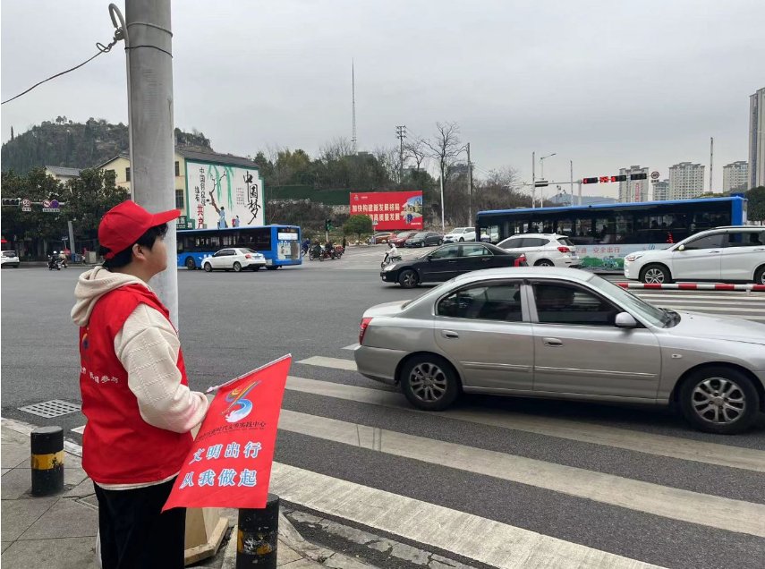 安顺市经开区新时代文明实践中心组织志愿者开展了“我在新时代文明实践中心学雷锋”暨“行礼守礼 文明劝导”志愿服务活动。