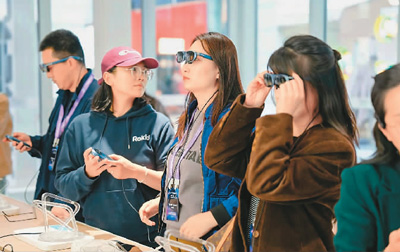 与会嘉宾正在体验AR设备。主办方供图