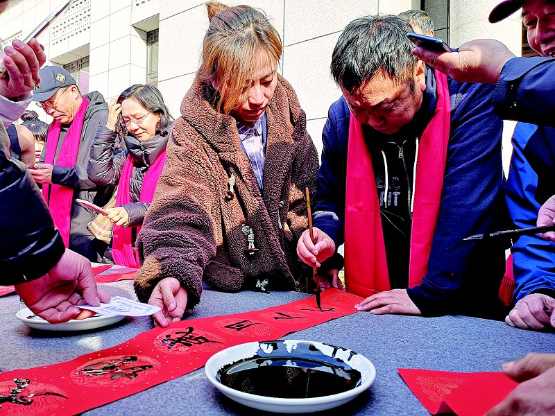 书法名家现场写春联,送祝福。
