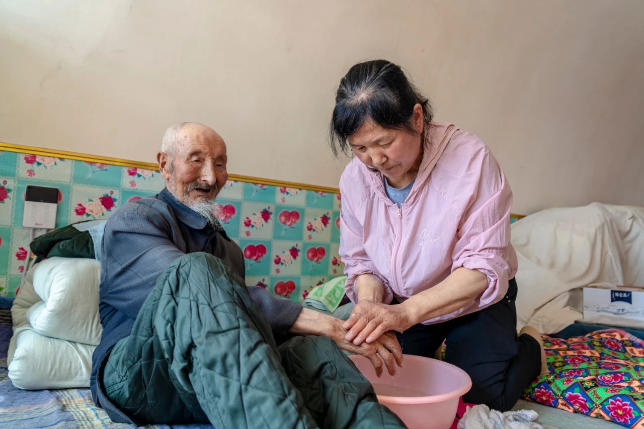 2022年疫情防控期间,杨翠兰更是时时刻刻操心着公公的身体健康,但家人先后都重感冒了。那段时间里,杨翠兰忍着病痛操持着家务。公公病倒后,在炕上睡了近5个月,全身疼得翻不了身。杨翠兰生怕老人久卧后生疮,每天轻手轻脚地给老人翻身、擦洗身子,按时按点给老人喂饭、清理大小便……老人喜欢吃点心、蛋糕等甜食,她就时常在一日三餐的空隙里,为老人准备好甜食和热茶,尽心尽力地照顾老人。