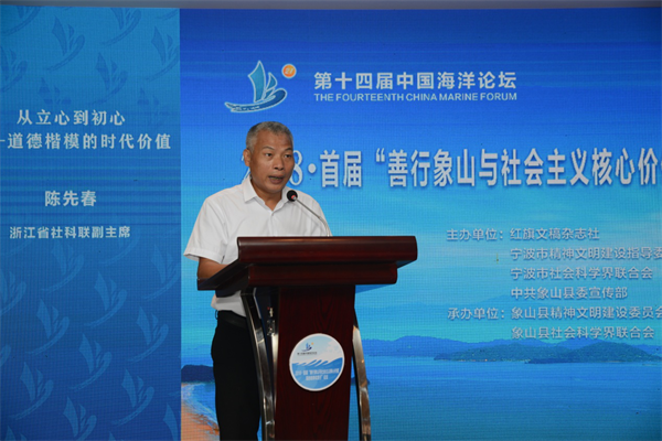 浙江省社科联副主席陈先春作大会发言。图片来源:宁波文明网