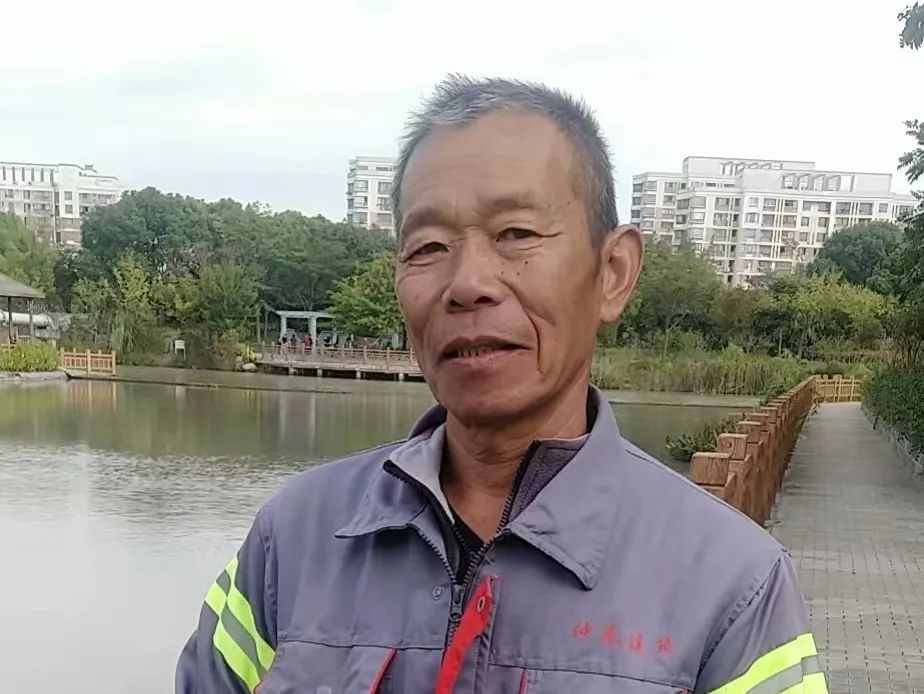 第一个故事的主人翁是位银发苍苍的老人——潘洪权,今年67岁,在上海仲泰建筑工程有限公司工作,从事街道河道保洁。