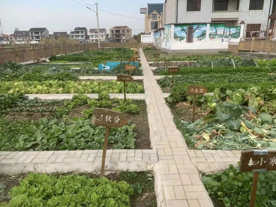 “爱心菜园”坐落于村委会西北角,丁连村九组西侧,面积约400平方米,划分为若干块小菜地,分别以节气命名。化地为田,阡陌成园,整个菜园规划有序,用竹子围成的篱笆清新自然,石子铺成的菜园小道美观实用。