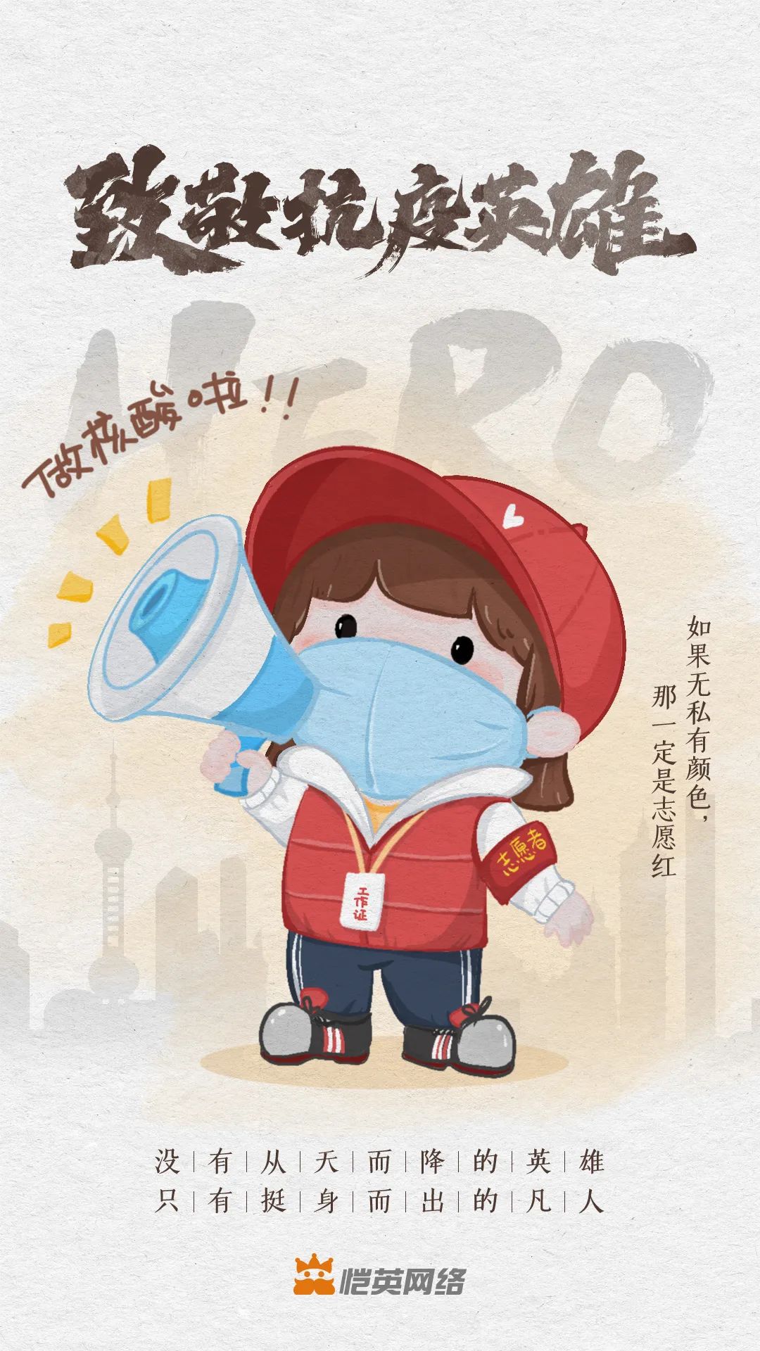 在开展社区志愿服务的同时,恺英网络也制作了一系列海报,向在一线默默付出、冲锋在前、坚守岗位为人民服务的抗疫英雄们致敬。