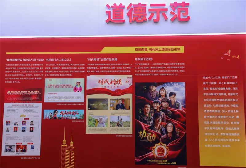 这是2022年8月28日在中国网络文明大会现场拍摄的新时代中国网络文明建设成果展“道德示范”展区。中国文明网 周胜武 摄