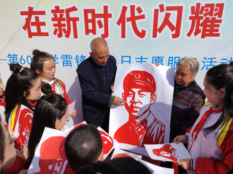 一把剪刀、一页红纸、一双巧手,一幅精美的剪纸作品跃然呈现。表演活动后,非遗剪纸艺人魏永信向孩子们传授剪纸技艺,以剪纸这一中国传统艺术为载体诠释雷锋精神,引导青少年学生争当新时代雷锋传人。“看着我亲手剪出的雷锋叔叔形象,我觉得离雷锋叔叔更近了。我要像雷锋叔叔一样,帮助他人,多做好事。”临潼区铁路小学学生浦朔睿说。