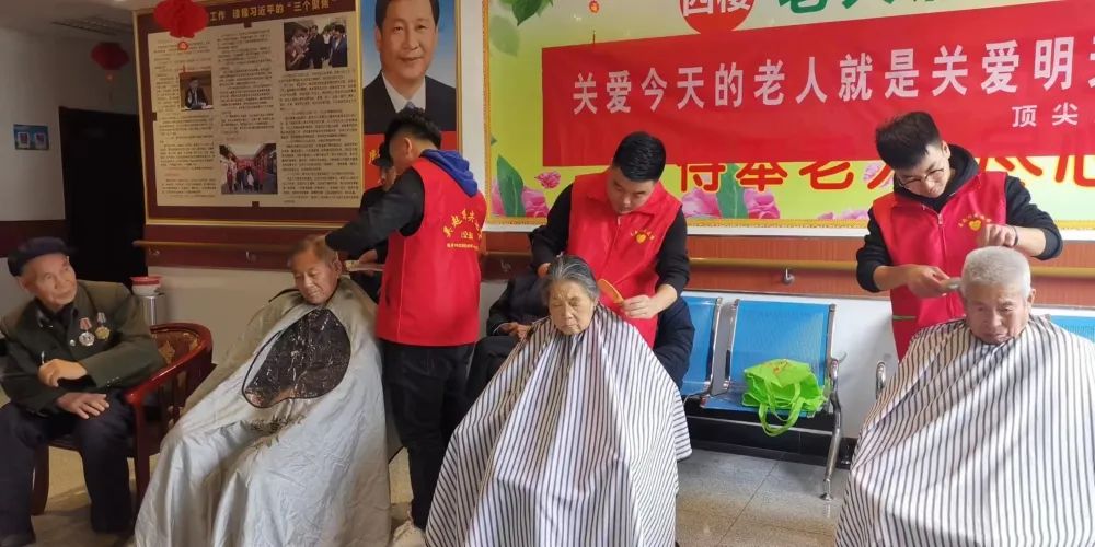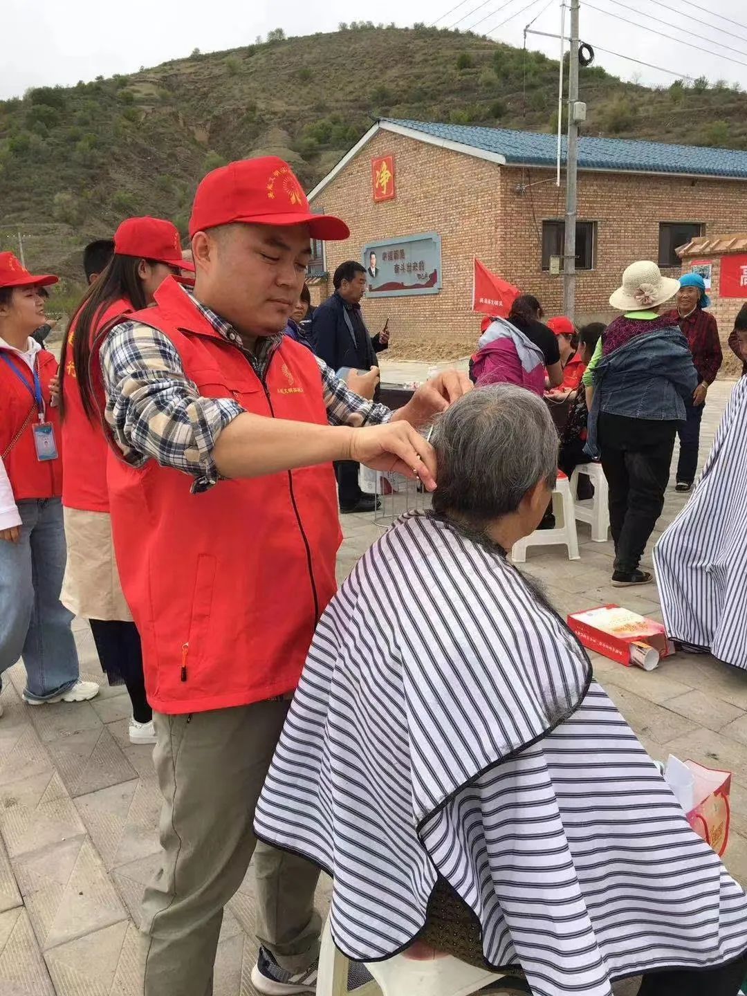 2017年9月他又亲自带两名学徒租了一辆车下乡到白豹镇小涧村登门上户为老人,残疾人等弱势群体免费服务,并且为他们赠送电推子15把,洗发水45套,本次上门免费服务人数60余人。