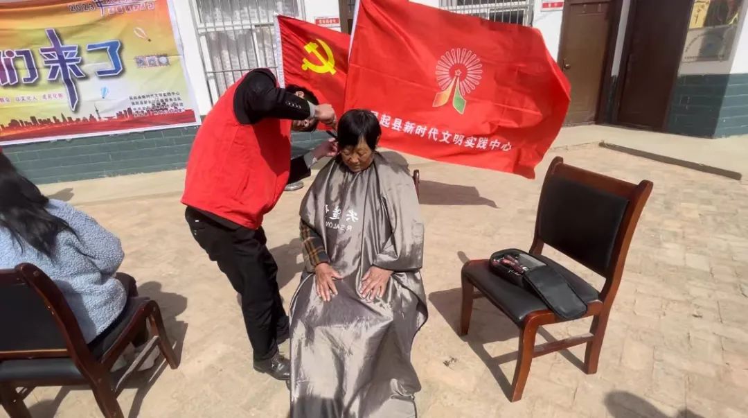 在志愿服务活动环节,县新时代文明实践指导中心邀请顶尖造型“最美志愿者”理发师为大家提供“爱心义剪”,这个项目深受乡亲们的喜爱,大家说,“这才是我们最需要的,很实在,你们要常来”。志愿者李西宁为大家带来才艺展示,陕北民歌浑厚悠扬的歌声激荡起黄土地上泥土的芬芳,唱出了陕北儿女真挚朴实的情感,唱响了榆树坪村父老乡亲们的美好希望。随后志愿者们带着大米、油等生活必需品对部分家庭进行入户关爱活动。活动结束后,大家合影留念,记录美好瞬间,照片中大家脸上的笑容就是对志愿者工作的肯定。