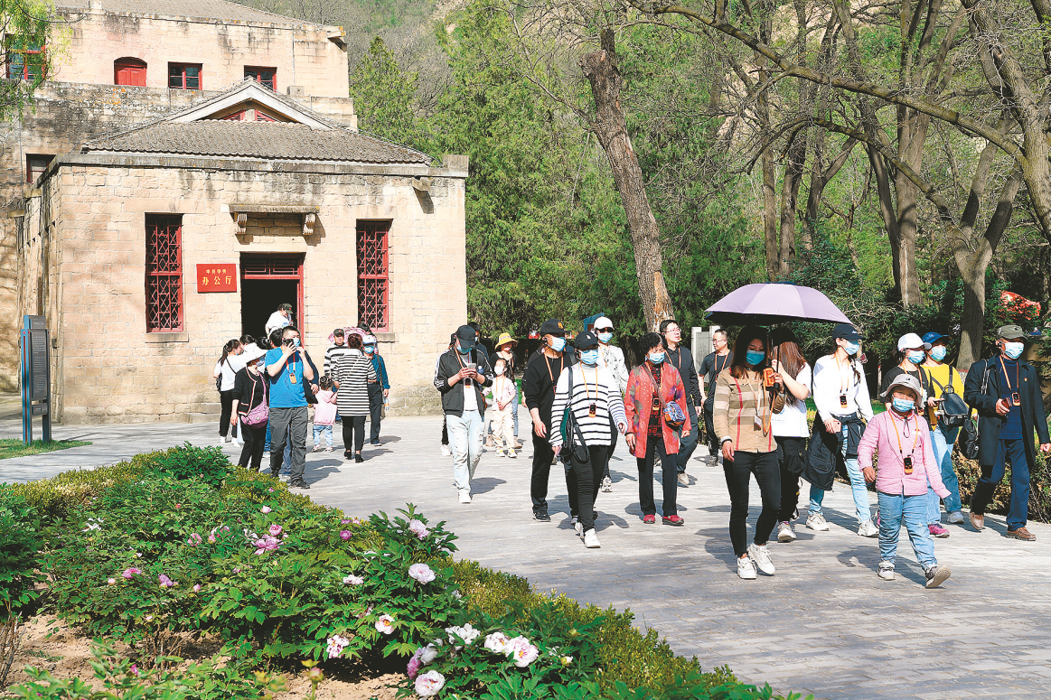 5月1日,游客在杨家岭革命旧址参观 记者刘阳 摄
