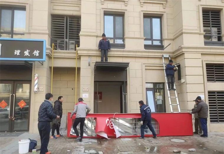 新立街道综合执法大队针对街域范围内主次干道两侧及沿街设置在建筑物屋顶、墙面的广告牌匾及商铺门头店招等广告设施进行全面摸底调查,遵循一店一招牌匾规范合理原则,对未批私设、陈旧破损及存在安全隐患等问题牌匾,严格按照规范化管理要求落实整改,积极督促相关责任人配合进行拆除治理。截至目前,已拆除违规广告牌匾4处,拆除违规刀牌6处,清理违规占路广告设施65处,排查单体字广告19处。