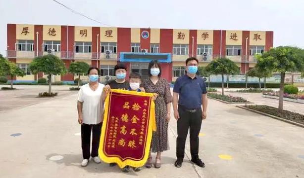 6月21日,失主王立成专程来到丰润区白官屯镇冉各庄小学,把一面绣有“拾金不昧 品德高尚”的锦旗送到该校王湛江及教师手里,感谢学生高尚的道德品质,感谢学校教师的教育有方。据悉,5月中旬,王先生家孩子因摔伤需要到医院治疗,孩子奶奶十分着急,从家中拿着5000元赶往医院,不慎将钱财丢失,这时候王湛江正和其他同学从此路过,当时的他拿着捡到的钱,在原地等待无果的情况下,径直走向村委会,由村干部及时交到失主手中。经了解才知道,失主家的孩子急需住院,这5000元钱是他家孩子的“救命钱”,失主一家万分感激,把锦旗和感谢信送到学校。