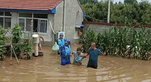 7月4日,遵化市出现大暴雨,城区发生内涝,人民群众生命财产受到威胁,面对严峻灾情,遵化蓝天救援协会召集具有丰富水上救援经验的30余名队员,分头救援抢险。栗源西三环处一辆载有20多人的班车进水,车内人员遇险,协会迅速启动应急救援响应,在龙凤祥苑等市区14个重点路口救援被困群众28人,遇险车辆57辆。蒲池河村数名群众家中房内进水,两位村民被困至水位高达1.7米的养殖场内,9名蓝天救援协会队员绕行20公里赶到,驾驶冲锋舟从栗树林进入逐一将6名被困群众全部转移到安全地带。