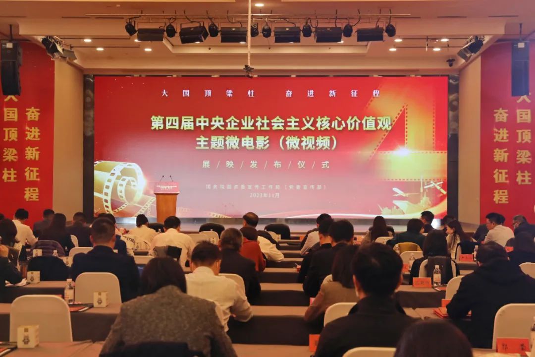 11月7日,第四届中央企业社会主义核心价值观主题微电影(微视频)展映发布活动在京举行。活动现场发布了大国重器、敬业奉献、社会责任、初心使命等四个主题100部优秀作品,展播了中国船舶《大力弘扬航母精神 兴装强军再立新功》、中国航发《接力》、国家电网《水》、中国三峡集团《追光的人》等4部作品。国资委宣传工作局(党委宣传部)、中央宣传部宣教局、国资委社会责任局、电影频道、中央新影集团、中国联通等有关负责同志出席活动。