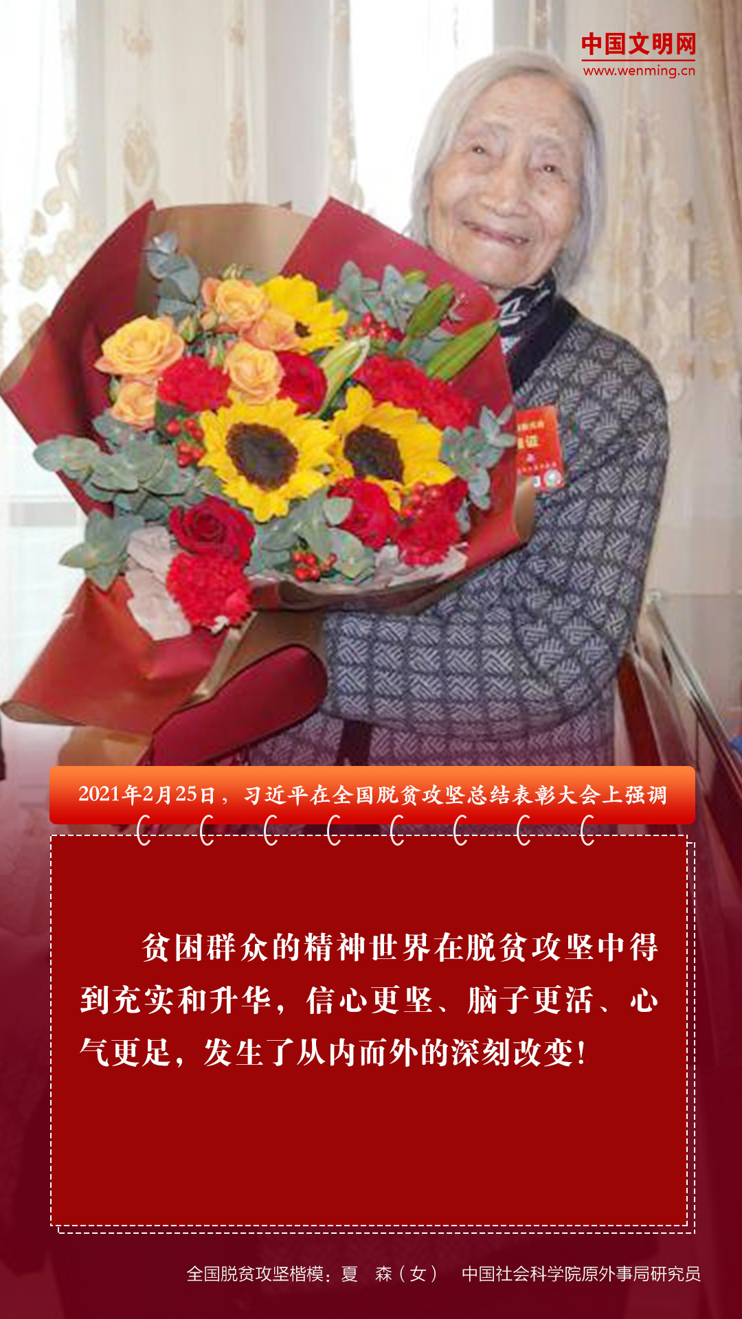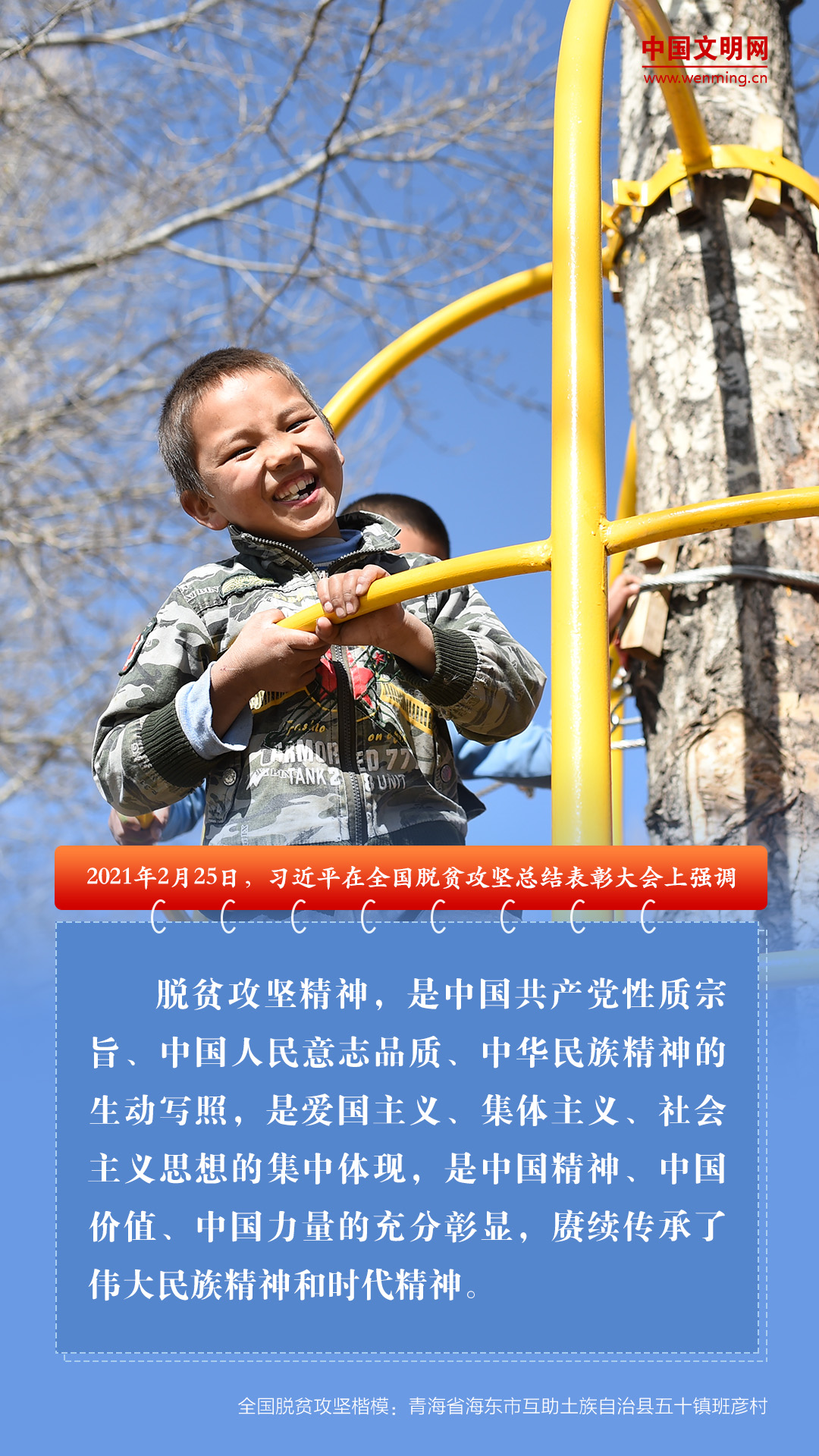 全国脱贫攻坚总结表彰大会于2月25日上午在北京人民大会堂隆重举行。中共中央总书记、国家主席、中央军委主席习近平向全国脱贫攻坚楷模荣誉称号获得者颁奖并发表重要讲话。大会还对全国脱贫攻坚先进个人、先进集体进行表彰。习近平强调,脱贫攻坚伟大斗争,锻造形成了“上下同心、尽锐出战、精准务实、开拓创新、攻坚克难、不负人民”的脱贫攻坚精神。让我们大力弘扬脱贫攻坚精神,团结一心,英勇奋斗,坚决战胜前进道路上的一切困难和风险,不断夺取坚持和发展中国特色社会主义新的更大的胜利!