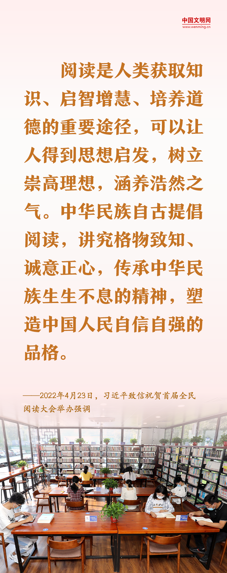 习近平总书记在党的二十大报告中强调,要“深化全民阅读活动”。值此世界读书日之际,让我们一起重温学习习近平总书记关于读书的殷殷嘱托,多读书,读好书,从书本中汲取智慧和营养。