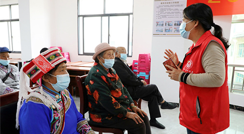 近日,大理白族自治州鹤庆县医疗健康志愿服务队到黄坪镇财丰村委会定光村开展健康义诊志愿服务活动。