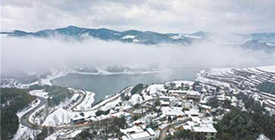 初冬已至,气候温暖的沿江地区还俨然秋季之景,色彩斑斓的树木、花草与乡村相映成趣,村里建起的客栈在阳光下显得安静怡然,小院里丰收的玉米黄灿灿的,构成一幅美丽的秋日画卷。