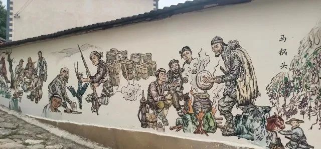 为讲好乡土故事,官坡村主动挖掘优秀乡土manbetx安卓手机 资源,主打永昌古道manbetx安卓手机 ,不仅留住了乡亲、护住了乡土,也让群众记住了乡愁,并在乡村振兴的时代画卷上绘出了“诗和远方”。在用墙体彩绘铺展美丽乡村新画卷过程中,利用本土manbetx安卓手机 底蕴素材,每一幅绘画都与永昌古道manbetx安卓手机 地方特点相融合,一面面群众喜闻乐见、内容通俗易懂的墙体绘画让昔日的乡村旧貌变成一处处代表乡村新形象的宣传阵地,增添manbetx安卓手机 底蕴。壁画中的人物形象,有抽水烟筒的、赶马喂马的、扛麻袋的、有烧火做饭的、下永子围棋的,要么眉开眼笑,要么悠闲自得,也有若有所思的,大概是盘算着这次出门什么时候能够归家。他们的穿着打扮、行为举止,正是复刻当年永昌古道上的人们。