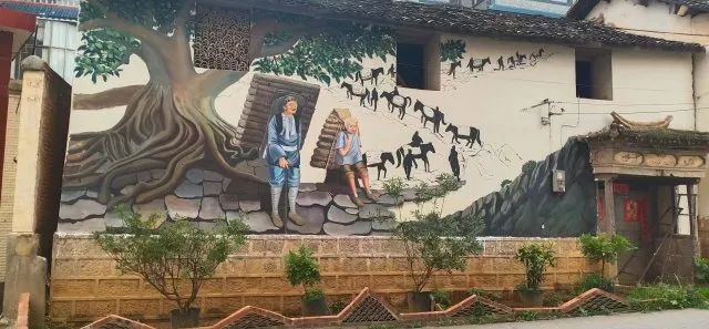 “以前这里是一面石灰墙,墙上随时被贴了小广告。现在一打开门,就看到这么漂亮的墙体画,让人想到很久很久之前的马帮故事,感觉特别好。”老党员张大爷说道。“我们发现老家的变化太大了,带着孩子回来,都舍不得走了。”在外工作的老杨感慨万千。小宋带着女儿从青龙街来到了官坡,女儿看得津津有味,指着画中的人物寻根问底。