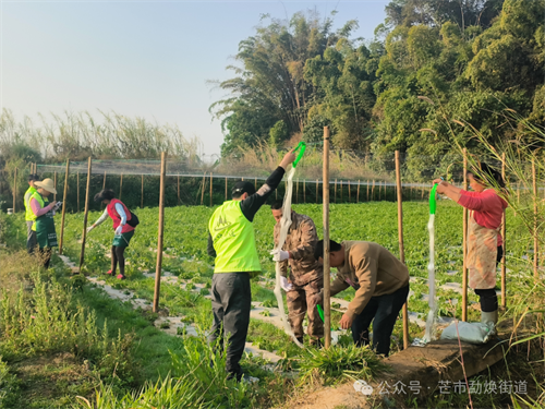活动现场,身着红色马甲的志愿者们成为春日田野里一道亮丽风景线。他们分工明确、配合默契,有的抡起工具打洞、插树桩,为布网筑牢根基;有的奋力拉网,确保网线紧实平整;还有的悉心整理豆苗藤,将杂乱无章的藤蔓仔细梳理,轻轻绑缚在网上,为豆苗后续茁壮成长创造良好条件。