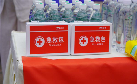 在家长休息区,志愿者提供的急救包
