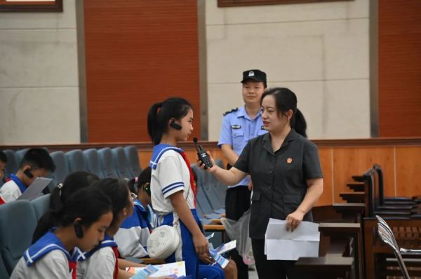 同时,法院干警还向同学们进行了简单的法律知识宣讲,并现场互动问答,同学们纷纷举手,踊跃参与。法院干警带领同学们一起学唱“禁毒拍手歌”,有趣多样的形式引导同学们牢固树立禁毒意识。同学们纷纷表示,要努力学习法律知识,做遵纪守法的好学生。
