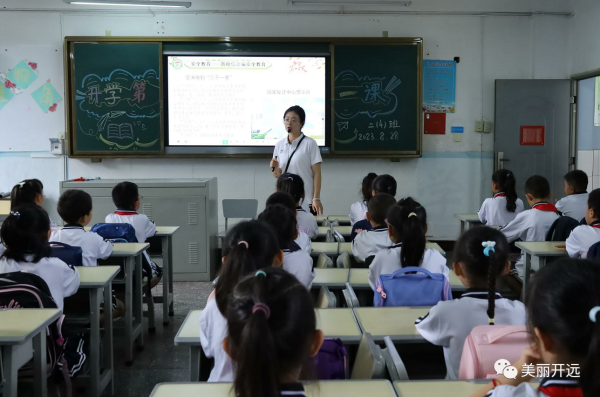 典礼过后,各班以安全教育为主题进行“开学第一课”。教师从防溺水、反诈骗、交通安全、反校园欺凌等方面,给同学们上了一堂主题鲜明、生动有趣的安全课。课堂上,同学们认真听讲、踊跃发言,分享学到的新知识。