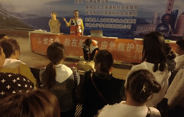 临沧市永德县着力发挥红十字会群众性应急救护培训工作的主体作用,积极发动各级医疗卫生机构及红十字志愿者,围绕重点行业、重点领域,白天进校园开展应急救护知识培训,晚上“摆地摊”宣传应急救护知识,努力营造“人人学急救 急救为人人”的良好氛围。
