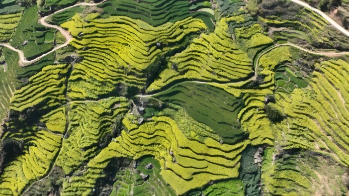 寒冬未尽,春意已来。在双江拉祜族佤族布朗族傣族自治县忙糯乡滚岗村的田间地头,千亩油菜花竞相绽放,一眼望去,金灿灿的油菜花染尽山野,一片片盛开的油菜花田为忙糯乡的山川带来了最早的“春”色。穿行于油菜花田,微风轻拂,油菜花淡淡的清香扑面而来,沁人心脾。错落有致的乡村民居与油菜花相得益彰,在蓝天白云的映衬下,构成了一幅生态美、产业兴、百姓富的乡村田园画卷。(陆元娟)