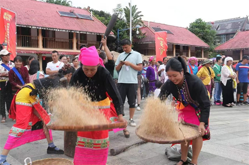 崇尚自然、感恩自然的佤族群众在新米节的这一天,各家各户要打谷子、舂新米,共享丰收喜悦。在“舂新米”的比赛现场,选手们分工协作、默契配合,交替舂捣、筛选新米,展现了一幅丰收的热闹景象。
