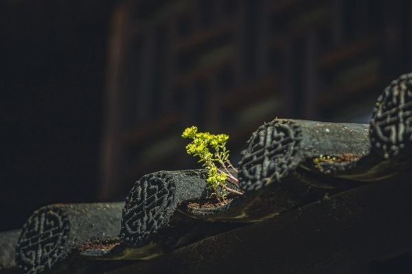 瓦间的青苔生了息,青了黄,瓦花仿佛是在当中凭空冒出来的主角,高高摇曳在屋顶之上,明晃晃的美,孤绝又热烈。