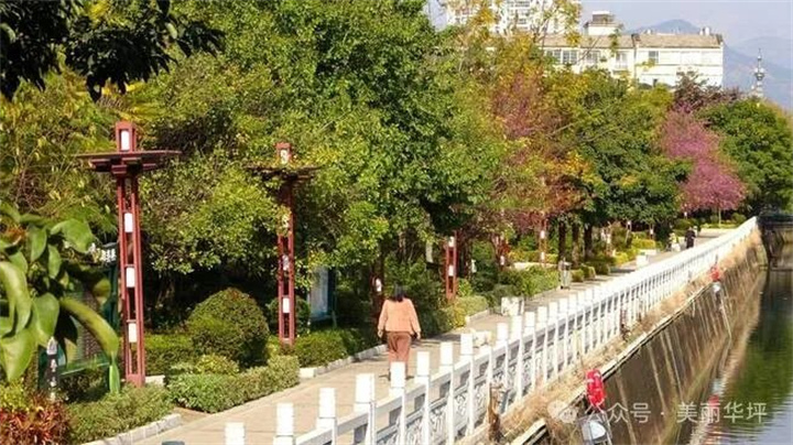 在华坪县城鲤鱼河畔,虽是隆冬季节,但是依旧满眼都是绿,最引人注目的,莫过于点缀其中的冬樱花。在碧蓝天空的映衬下,一簇簇粉红色的冬樱花,密密匝匝,堆红砌粉,微风吹过,摇曳的冬樱花,犹如一群粉色的小精灵,舞动翩跹,在阳光照耀之下,愈发娇艳妩媚,让人忍不住驻足观赏,邂逅这份粉红的温柔。