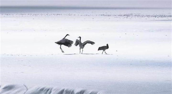 冬日的念湖,黑颈鹤、灰鹤、斑头雁等候鸟不远万里成群结队迁徙而来越冬,为念湖平添了几分灵气。若下一场雪,念湖变成银装素裹的白色世界,千树万树梨花开。云雾弥漫开来,念湖若隐若现,黑颈鹤及各种水鸟在湖面上或翩翩起舞,或展翅飞翔,虚实浓淡皆有度,画面充满梦幻,宛如人间仙境,美丽极了。