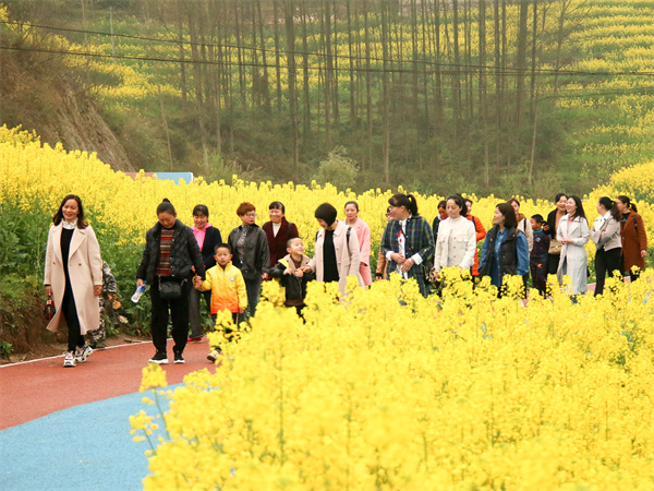 花海徒步,娱乐身心。开展花海徒步活动,通过低碳绿色的健身方式,展现九龙妇女团结奋发、积极向上的良好精神面貌。活动中,大家三五成群相互结伴,迈着矫健的步伐,沿着规定路线,一边欣赏沿途怒放的油菜花,一边呼吸大自然的清新空气,在紧张的工作之余放松身心,享受春日里的美好。
