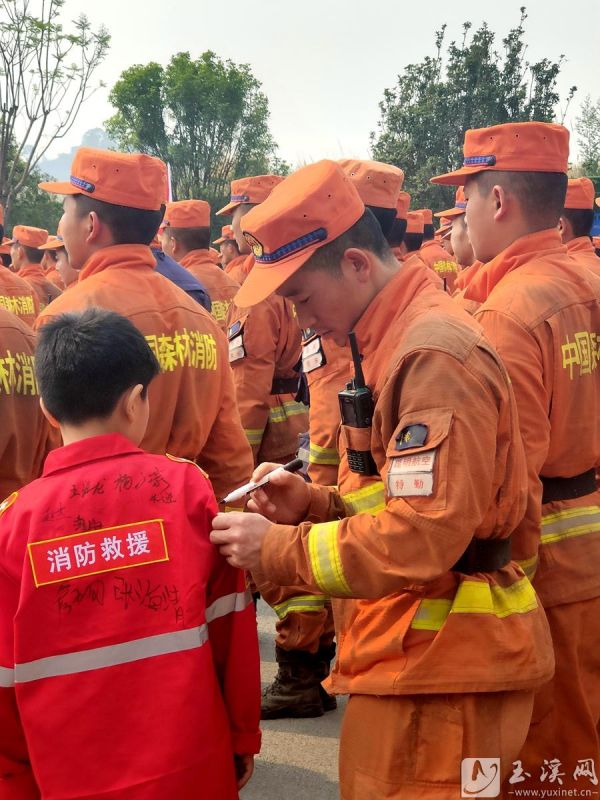 在社区的指导下,红塔区李棋街道山头社区居民任玉娇一家于4月14日进行了提前转移。“火灭了,我们的心就安定了。听到今早要欢送消防员,孩子们都要来现场感谢他们。”儿子李俊拉着任玉娇的手说:“妈妈,我长大以后也想当一名消防员,像他们一样保护我们的家园和森林。”玉溪第一小学manbetx安卓手机 校区学生壮恪豪身穿红色的消防员服装赶到现场,请消防员叔叔在衣服上签名,并用军礼向消防员们致敬,祝愿他们每次都能平安归来。